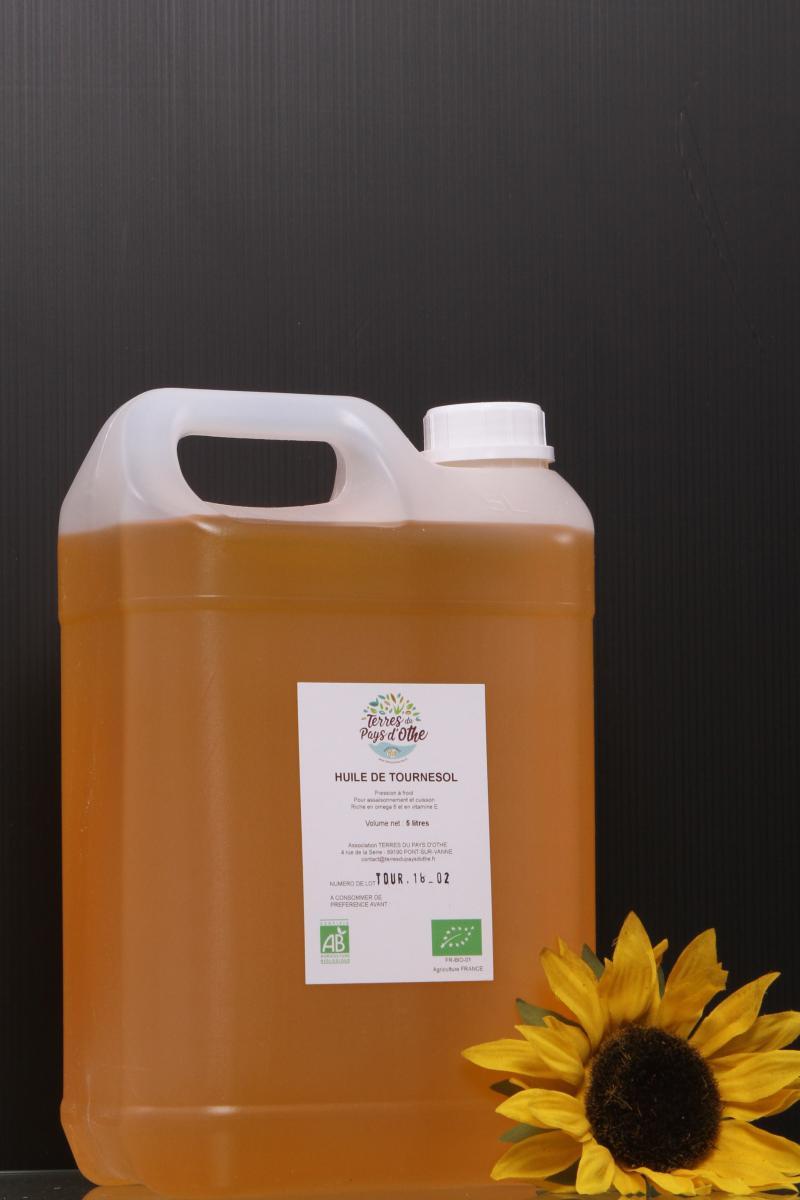 Vierge et de première pression à froid, de la graine de la fleur du soleil est extraite une huile fruitée et parfumée riche en oméga6..